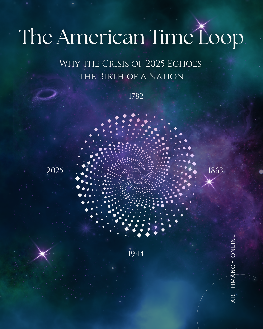 For those who observe the patterns of cosmic and historical cycles, the year 2025 doesn’t seem like a random moment in history; it feels like an echo in time. Our current energy—marked by intense political division, institutional upheaval, and revolutionary technological change—resonates strongly with the atmosphere of two earlier national crises, 1863 and 1944. But when you consider the full triple-cycle of 81 × 3, you arrive at 1782, revealing a 243-year pattern in the American experience that is quite uncanny. This sequence of years—1782, 1863, 1944, and 2025—shows that America doesn’t just evolve; it undergoes a process of violent, recurring reinvention roughly every 81 years, aligning with the Uranus 84-year cycle of revolution and the numerological ‘9’ representing completion and renewal beginnings.